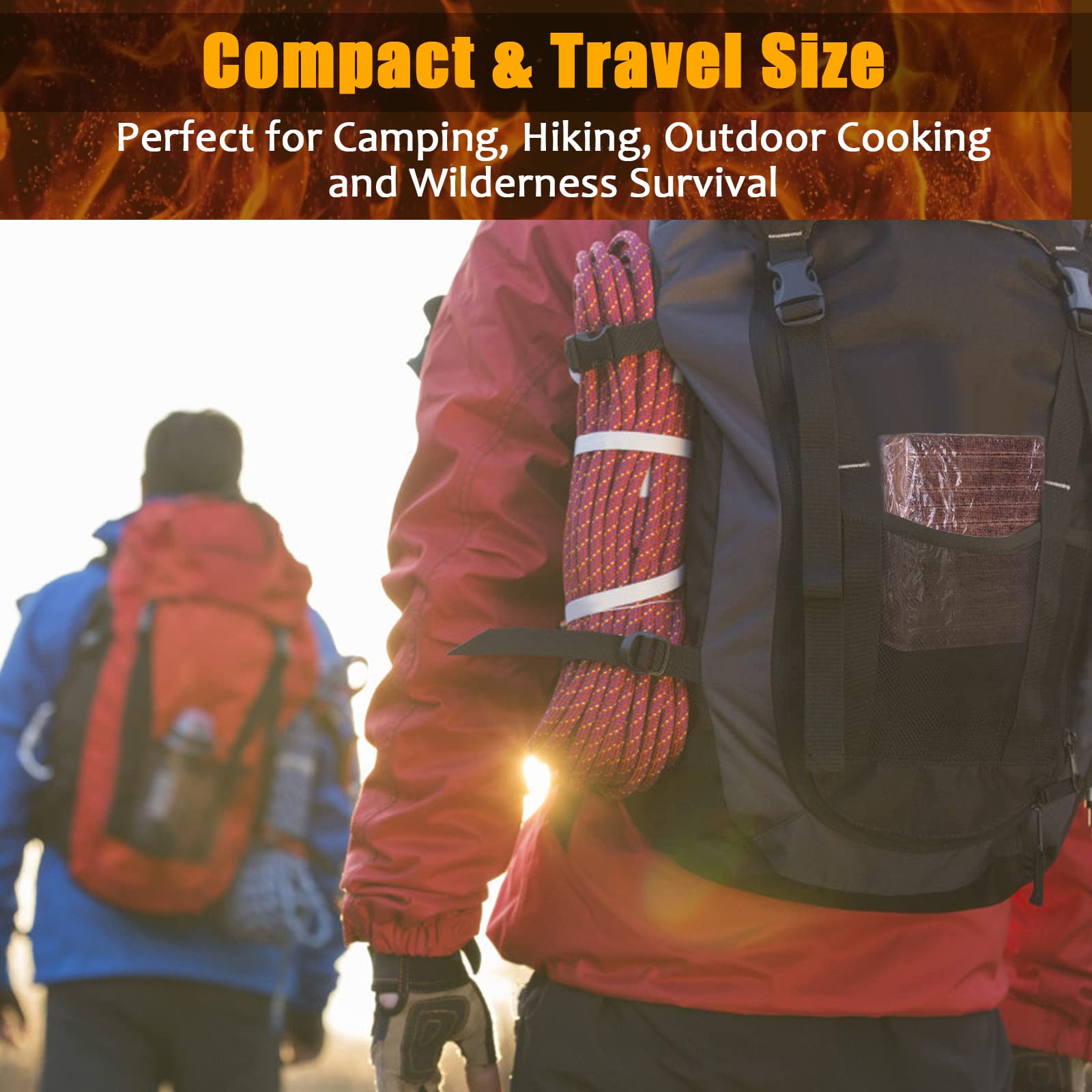 - DURABLE & LONG-LASTING FIRE STARTERS: A robust fire starter block burns up to 8-10 mintues, long enough to start a cozy fire on your fire pit, grill & fireplace. It's compact & lightweight to place into your backpack with the portable size of camp fire starters, to light a campfire for camping and hunting trips